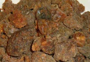 La mirra és una goma que s’extreu de diversos arbres africans. Té un color gris groguenc i el seu gust és amargant. El seu aroma el convertí en una matèria molt utilitzada per embalsamar, perfumar temples i per ungir en cerimònies reials. També s’emprava en medicaments i per diluir tinta en els papirs.