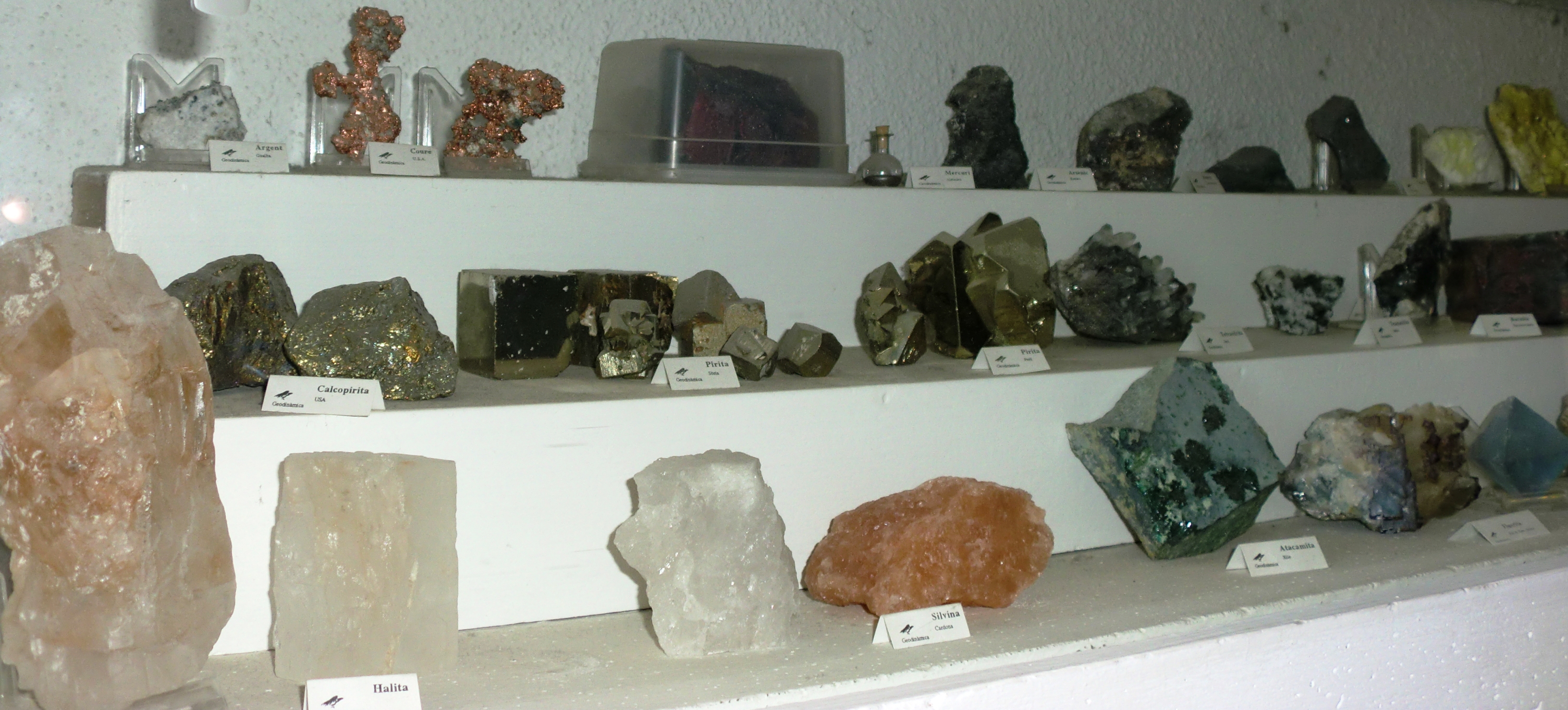 La 2a Foto Química de la Setmana ens l’envia el Departament de Ciències Ambientals de la Universitat de Girona i rau en la química de la geologia. A la col·lecció de minerals que ocupa unes quantes parets de la Facuyltat de Ciències de la UdG hi podem trobar molta química. Concretament a la foto hi apreciem des d’elements químics com el coure (Cu) o el mercuri (Hg) fins a compostos iònics com la halita (NaCl) o la pirita (FeS2).