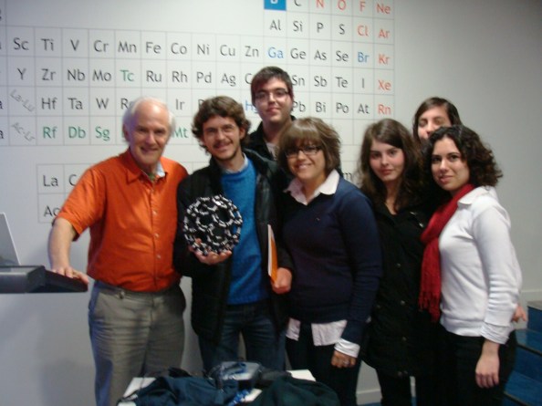 Estudiants Química UdG amb el Professor Kroto, Nobel de Química 96, deprés de la conferència Carbon in Nano and Outer Space. Aula Magna Casassas, Facultat de Química de la UB, 11/03/11.