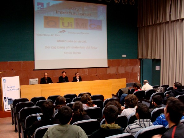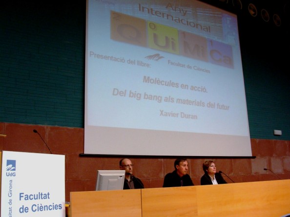 Finalment Xavier Duran prengué la paraula per presentar el seu llibre que pretén mostrar la química que ens envolta des d’un punt de vista actual i un caràcter divulgatiu tot i el llenguatge rigorós. Després de l’acte els assistents varen poder demanar a Duran que els dediqués el seu exemplar de Molècules en acció: Del big bang als materials del futur.