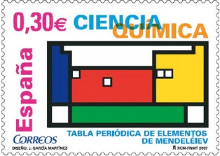 El 2 de febrer de 2007 es va commemorar el centenari de la mort de Mendeléiev. Per celebrar-ho, la Real Societat Espanyola de Química (RSEQ) en col.laboració amb el servei postal de Correus va proposar l’emissió d’un segell commemoratiu de 0,30 euros amb l’obra més popularment coneguda de Mendeléiev: la taula periòdica dels elements químics. En el segell apareix una taula amb quatre buits, que simbolitzen els elements que va predir el genial científic rus i que serien descoberts uns anys més tard.