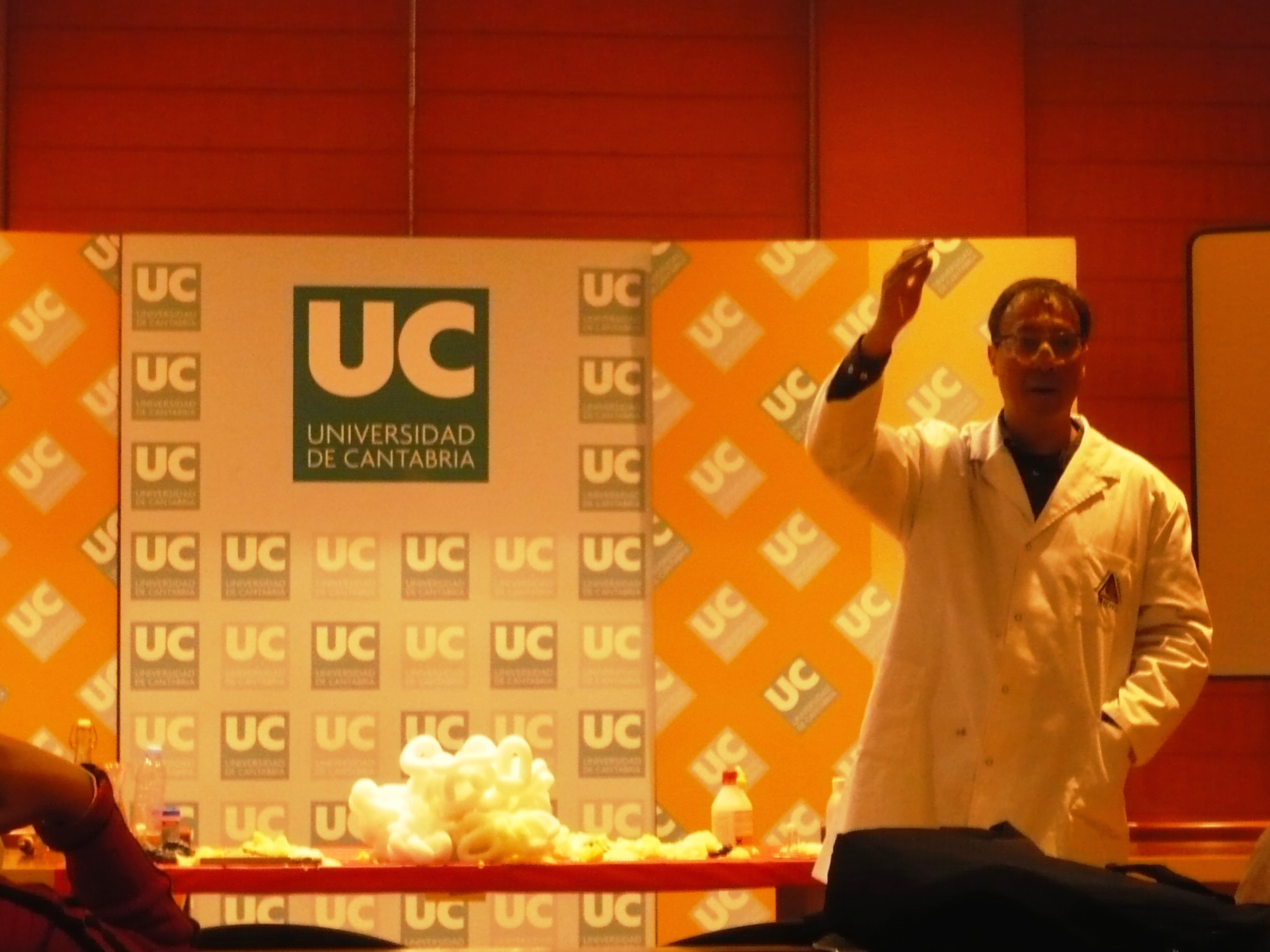 El passat dijous 12 de maig vaig tenir el privilegi de poder presentar el nostre taller Reacciona…explota! a Santander. Des de fa anys el professor Julio Güémez hi organitza l’aula de Ciència. Enguany el tema estrella ha estat la química. He de reconèixer que em va sorprendre molt la invitació, ja que tot i que ens hem mogut molt, el reacciona no sortit mai de l’entorn geogràfic català. I vés per on ens conviden a Cantàbria. Precisament avui hem conegut la persona que li va parlar de nosaltres . Es tracta del Dr. Juli Peretó, de la Universitat de València, que és un bon seguidor dels nostres blocs. Des d’aquí, moltes gràcies; anar a Santander va ser una gran experiència, conèixer el professor Güémez i la seva creuada en favor de la divulgació científica, un motivador exemple. El tracte amb tothom de l’Aula de la Ciència de Cantàbria va ser en tot moment exquisit.