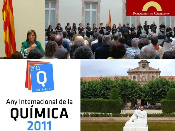 Tal i com vàrem comentar a l’entrada d’aquest mateix bloc, el passat dilluns 30 de maig, uns 200 químics catalans vàrem ésser convidats al Palau del Parlament de Catalunya per tal d’assistir a l’acte institucional de celebració de l’Any Internacional de la Química (AIQ2011).