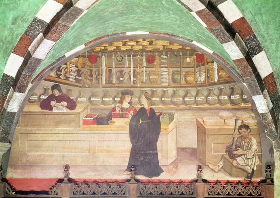 L’apotecari té la tasca de preparar els medicaments, bàlsams, espelmes…la farmàcia és ben bé un laboratori, ubicat en un indret higiènic, lluny de males olors.