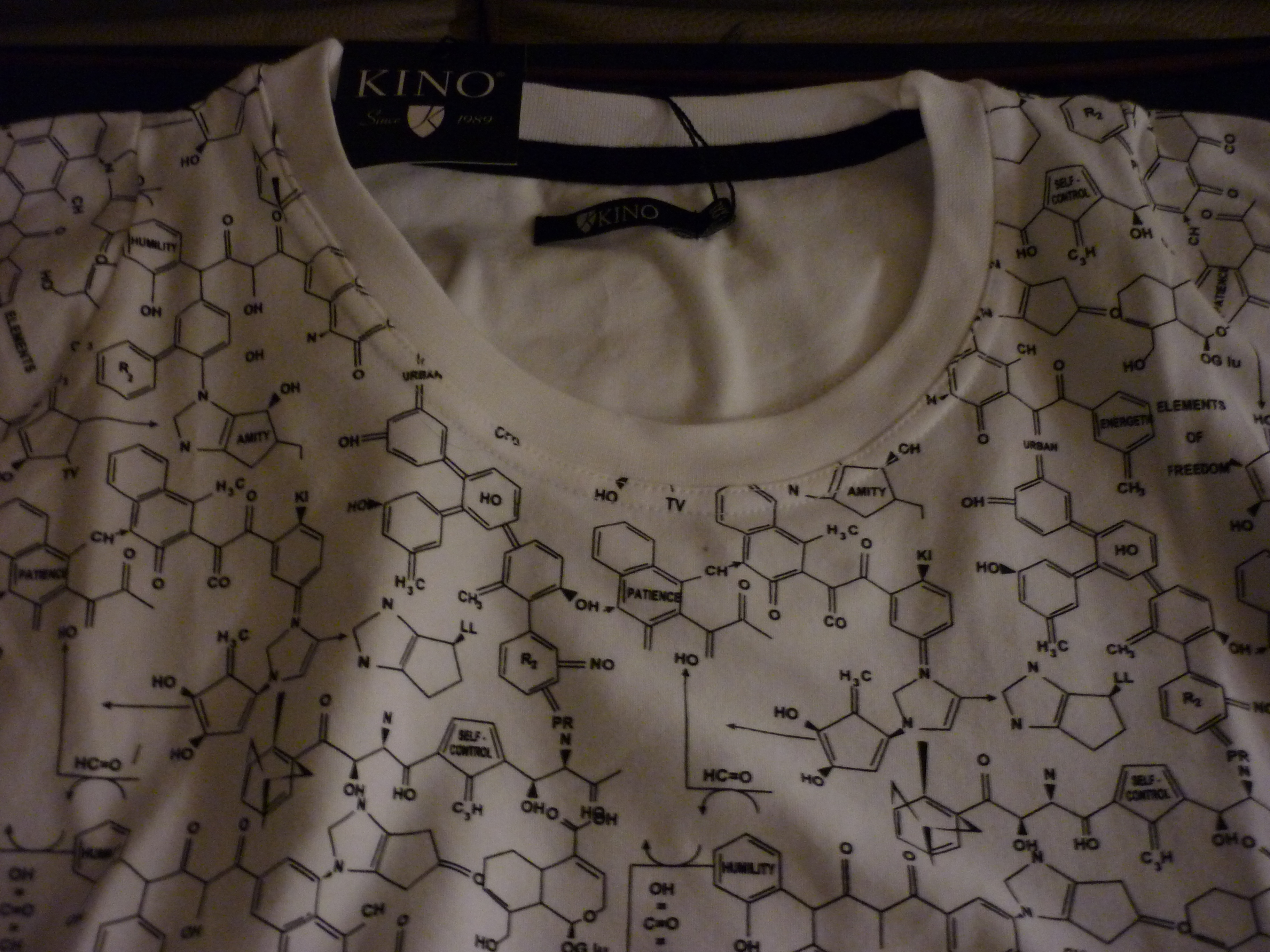 A uns magatzems de Finlàndia, en Xavier va descobrir, i comprarar -evidentment- aquesta divertida samarreta farcida de molècules orgàniques i diverses qualitats humanes. En coneixeu reconeixeu alguna (de molècula 😉 )?