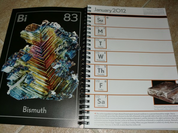 - Per al nou any 2012, com a seguici de l’Any Internacional de la Química, podem adquirir l’agenda de l’any The Photographic Engagement Calendar of The Elements: A Visual Exploration of Every Known Atom in the Universe 2012.