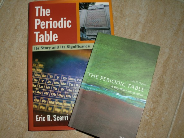 Per alta banda, recomano el llibre The Periodic Table A Very Short Introduction d’Eric R. Scerri. Aquest llibre acaba de sortir aquest mes de desembre i es tracta d’un nou exemplar de la sèrie A Very Short Introduction de l’editorial Oxford. Ja deveu conèixer el fantàstic llibre The Periodic Table. Its Story and Its Significance del mateix Scerri i publicat l’any 2007. Si us agrada, també us agradarà el nou llibret.