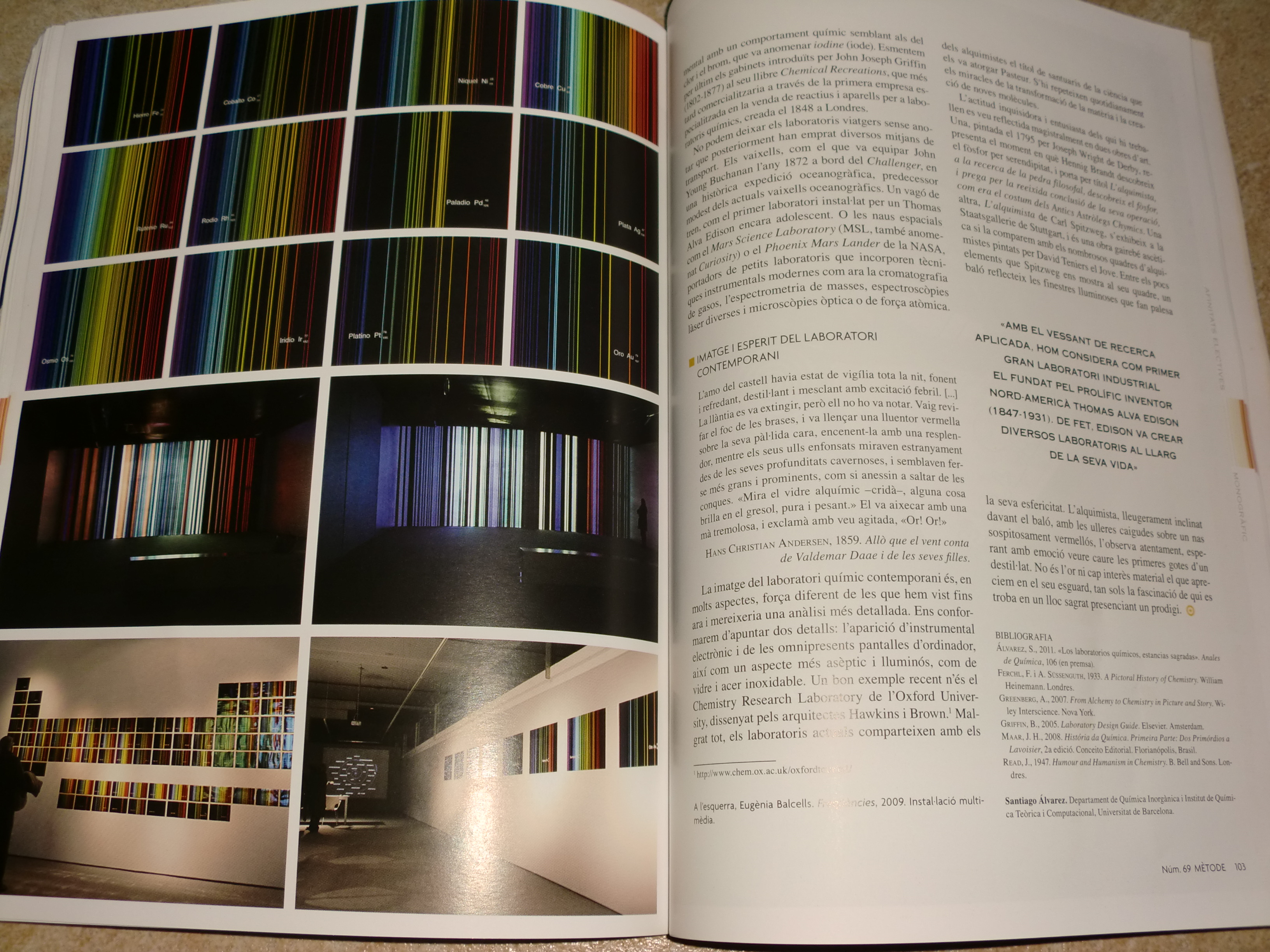 D’aquesta manera, entre els articles en trobem un dedicat a la ciència i l’art pictòric, on l’autor destaca l’obra Freqüències, d’Augènia Balcells, de la qual vàrem parlar el passat 11 de desembre, amb motiu de la Foto Química de la Setmana.