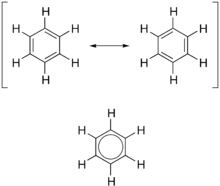 Figura 1. Les dues formes ressonants del benzè que combinades donen l'estructura promig representada per un cercle en mig del'anell