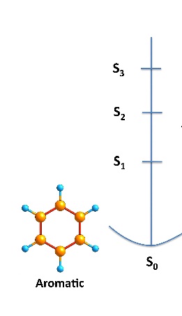 L’aromaticitat és una propietat que normalment està relacionada amb l’estat fonamental de les molècules estables. Encara que és ben sabut que certs estats excitats són aromàtics, l’aromaticitat dels estats excitats es manté força inexplorada. Des de l’any 1972 i a partir dels estudis de Baird es coneix que l’estat triplet més baix en energia d’un sistema de 4N electrons π és aromàtic. Per la resta d’estats excitats se’n sap poc a nivell teòric (recentment investigadors de l’Institut de Química Computacional han estudiat els estats excitats del benzè, Figura 2) i a nivell experimental no se’n sap gaire bé res, si bé es considera que la major part d’ells són no aromàtics o antiaromàtics.