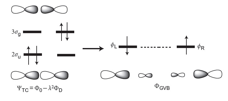 Molt recentment, Shaik, Hiberty i col·laboradors en un article en el darrer número de Nat. Chem. han qüestionat l’enllaç doble del C2 i han arribat a la conclusió que aquesta molècula de fet té un enllaç quàdruple, una hipòtesi que ja va plantejar en el seu moment Paul von Ragué Schleyer. El seu raonament és el següent. Tenim el doble enllaç π com s’ha vingut considerant fins ara, però la diferència és en l’enllaç σ. El 2σg s’ha de considerar un enllaç σ i el 2σu* es combina amb el 3σg (buit en el diagrama d’orbitals moleculars clàssic) per donar dos orbitals ΦL i ΦR que s’ocupen amb un electró cadascun (veure Figura 2). Aquesta situació és més estable que la que porta a ocupar un orbital 2σu*. Aquests orbitals ΦL i ΦR són una mica antienllaçants però no tant com el 2σu*. Això ens porta a la estructura 2 de la Figura 1b, amb un enllaç triple i dos electrons desaparellats, és a dir, un biradical.