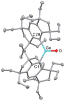 Els resultats dels càlculs que han fet els autors en un model simplificat del compost sintetitzat mostren que l’enllaç Ge=O està altament polaritzat com en el cas del carbonil (Figura 2). Malgrat que formalment és un doble enllaç, els càlculs donen un valor de l’ordre d’enllaç de 1.25. La reactivitat de la germanona és diferent a la de la cetona. Per exemple, en aigua la germanona forma un diol i en presència de diòxid de carboni dona lloc a un carbonat cíclic. Un compost més doncs en el ric arsenal a disposició dels químics.